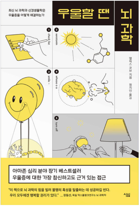 오래 기억에 남을 만큼 유익한 책이다. 종종 다시 들추어 보면서 참고할 만한 가치가 있는 좋은 책인 것 같다. 이 책은 "우울증"이라는 질병을 뇌과학적인 관점에서 설명하고 있다. 뇌의 어떤 부위가 어떤 역할을 맡고 있는지, 우울증은 어디에 문제가 있어서 생기는 것인지, 일상 생활에서 스스로 할 수 있는 자가처방이 뇌에 어떤 메커니즘으로 영향을 주는지, 우울증을 극복하려면 어떤 습관을 가져야 하는지 등에 대해서 상세하고도 친절하게, 어렵지 않게 설명해 주고 있다. 이 책에서 제시하는 전략의 이면에 숨어 있는 원리를 이해하면, 일상 생활에서 불안감을 감소시켜 주는 생활 습관이 어떤 것인지를 스스로 판단할 수 있다. 각 꼭지별 대략적인 내용은 다음과 같다.