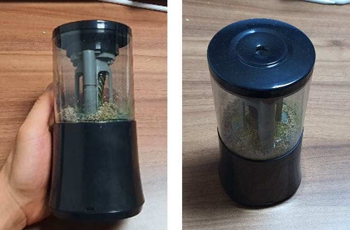 연필 깎고 나면 가루가 나오는데, 가루가 어느 정도 모이면 뚜껑을 열어서 비워 주어야 한다.
