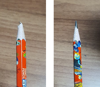 부러진 연필 기준으로 Before and After 비교를 해 보았다. 뾰족하게 잘 갈려 있다.