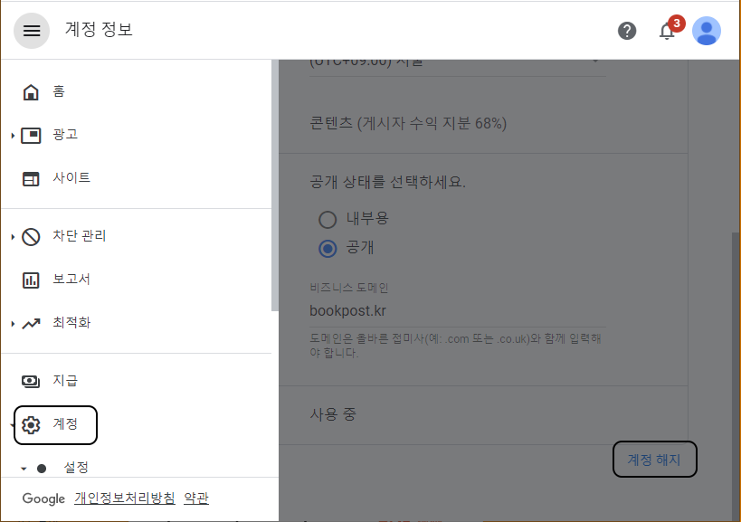 이미 가입된 애드센스 계정 해지