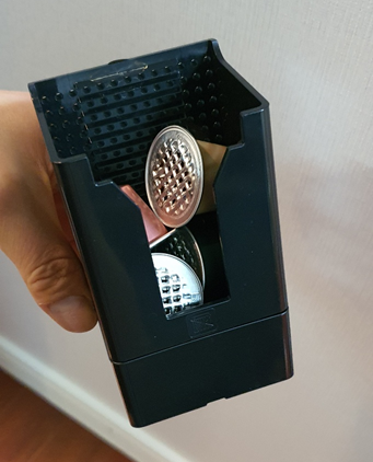 돌체구스토는 기기 내에 캡슐 폐기통이 없다. 커피를 두 잔 타려면 반드시 캡슐을 수동으로 제거해 주어야 했다. 한 손으로 할 수 있을 만큼 간단한 작업이지만, 네스프레소 커피머신처럼 레버만 젖히면 바로 아래로 떨어지는 구조보다 번거로운 건 사실이다.