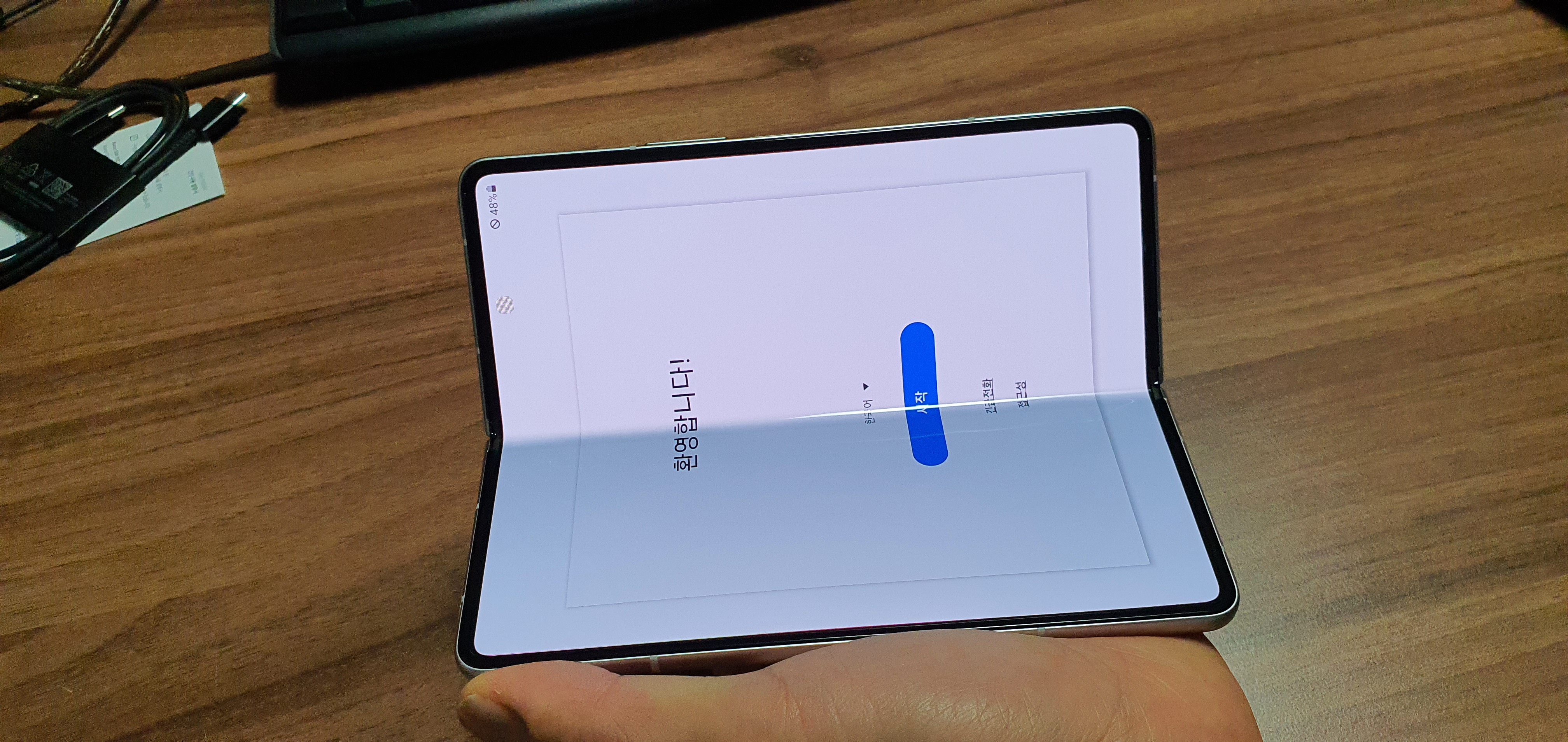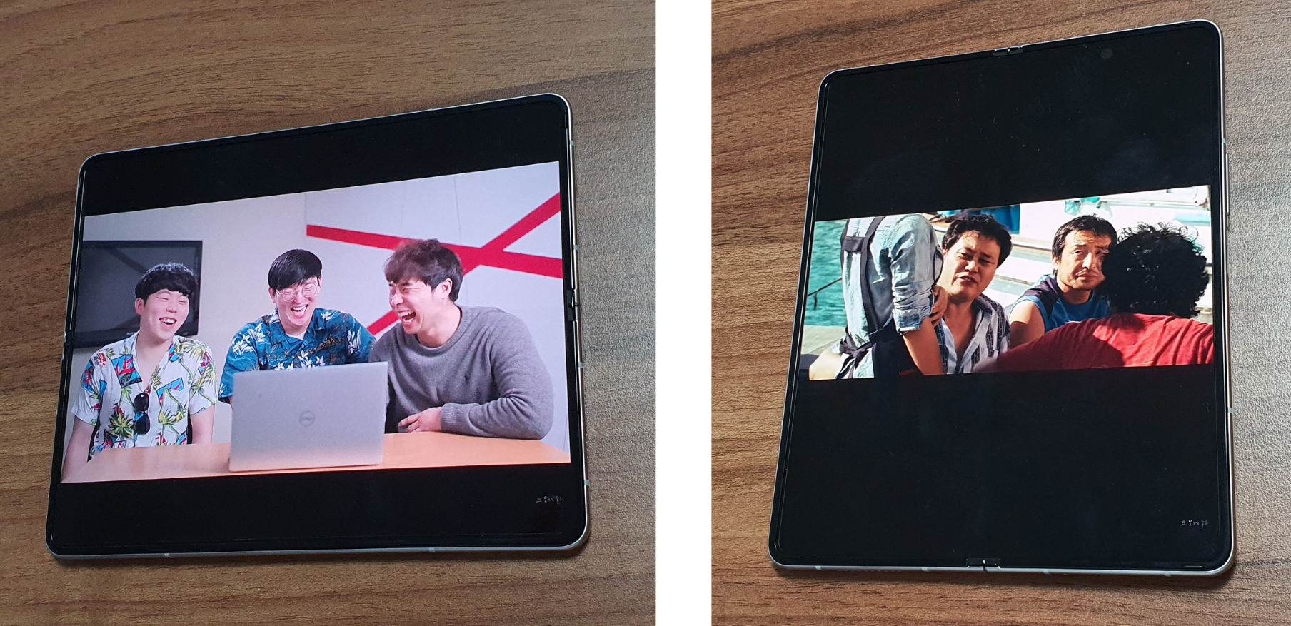 오프라인 매장 가서 만져봤을 때도 느낀 거지만, 접었을 때 전면 화면은 폭이 좁고 위아래로 긴 형태라서 적응하는 데는 약간 시간이 걸릴 것 같습니다. 예전에는 이보다 작은 화면도 무리 없이 썼었는데, 노트10+ 를 사용하다가 이렇게 좁고 긴 화면을 보니 어색하게 느껴지긴 하는군요.