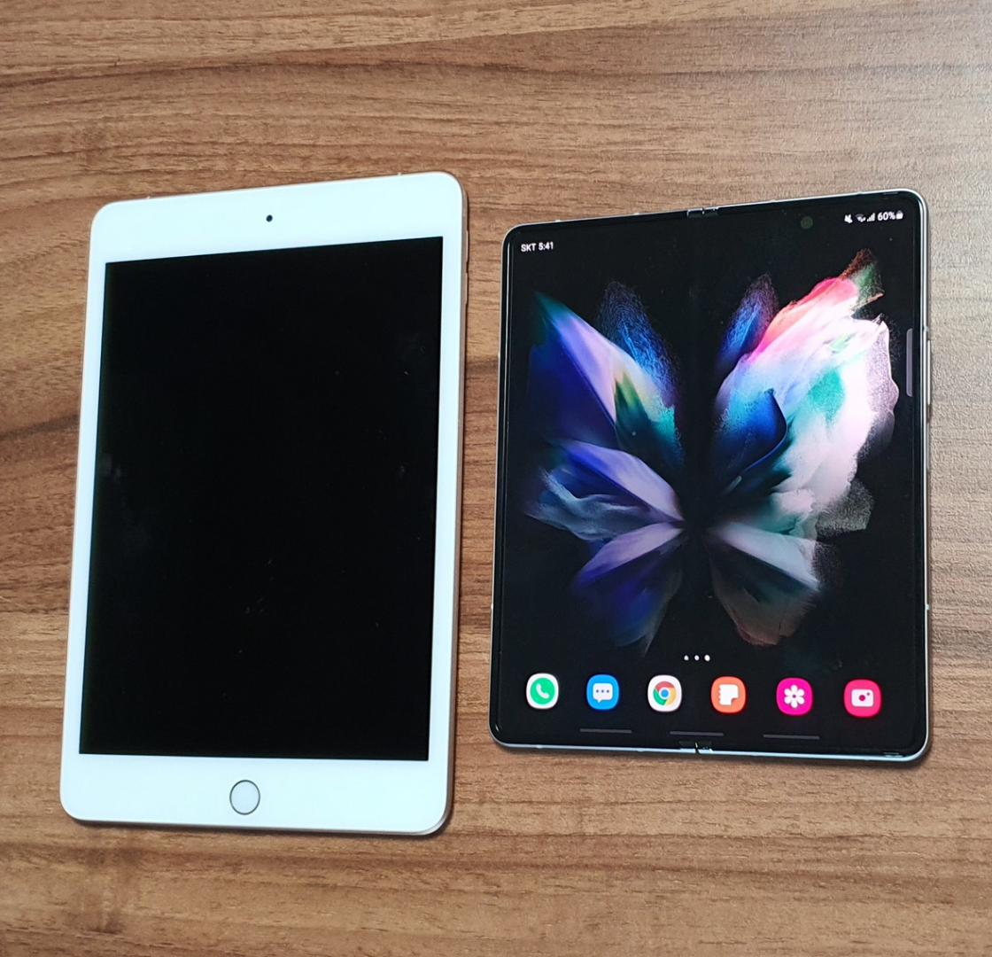 메인 디스플레이 크기는 7.6인치라고 해서 아이패드 미니급이다... 라고 생각했는데, 가로세로 비율 때문에 그보다는 조금 작은듯 합니다. 그래도 이 정도면 개인적으로 태블릿을 대체하는 용도로는 충분할 것 같습니다. 그 동안 태블릿과 휴대폰을 따로 들고 다니는 것이 영 귀찮았거든요. 언젠가 접는 태블릿이 나오면 꼭 사야겠다고 마음을 먹고 있었는데 Galaxy Z Fold 3 은 제가 가려운 부분을 딱 긁어주는 제품인 것 같습니다.