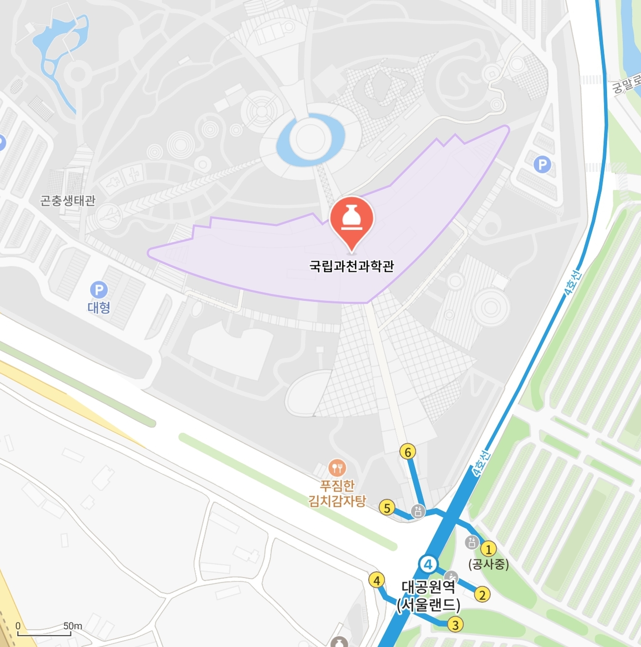 국립과천과학관은 서울대공원, 국립현대미술관, 경마공원 인근에 있어요. 지하철 4호선 대공원역에서 내려서 6번 출구로 가면 국립과천과학관을 만날 수 있습니다.