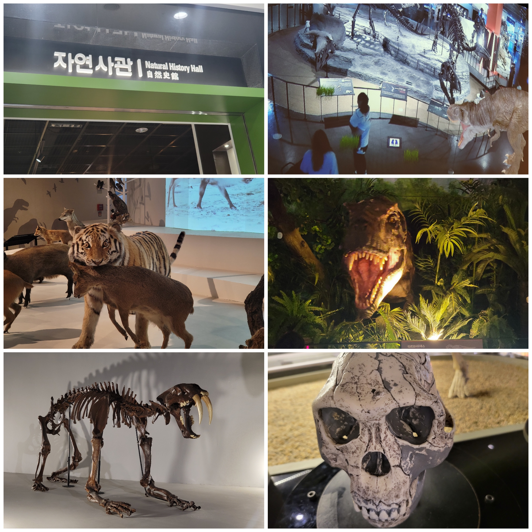 한참 놀다가 2층 자연사관에 다시 가봤습니다. 둘째가 공룡을 좋아하는데, 여길 먼저 가볼 걸 그랬네요. 트리보사우루스 모형을 리얼하게 만들어 놓았는데 이게 5분마다 한 번씩 움직이면서 괴성을 냅니다. 아이들이 다들 이거 보자고 엄마 아빠 졸라서 기다리네요. 정작 작종 작동되기 30초 전쯤 부터 한 발 한 발 뒤로 물러섭니다. 엄마 아빠는 좀 더 자세히 보려고 앞으로 다가갑니다. 애들은 너무 가까이 가지 말자고 무섭다고 뒤로 뺑니다. 귀엽네요.