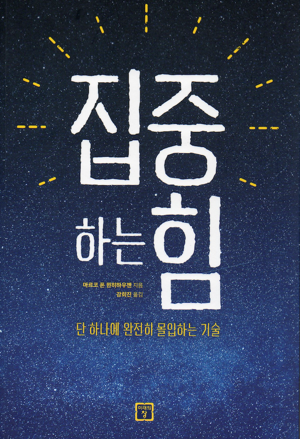 이 책은 집중력에 관해 다루고 있다. 집중하지 않을 때의 폐해가 무엇인지, 집중력이 주는 유익이 무엇인지, 집중상태를 만들고 유지하려면 어떻게 해야 하는지, 집중이 필요한 상황은 무엇인지 등을 다룬다. 나를 포함한 현대인에게 꼭 필요한 “집중력”이라는 자원을 어떻게 확보하과 관리할 것인지를 알려주는 토탈 솔루션 같은 책이다. 실전에서 바로 활용할 수 있는 액션 아이템들도 많이 보인다. 일부는 내가 직접 활용해서 효과를 본 것들도 있다. 한두 번 읽고, 실천할 수 있는 것들을 서너 가지라도 뽑아내어 적용할 수 있다면 주위의 소중한 것들에 좀더 몰입하고 집중할 수 있다. 결국 그것이 행복으로 가는 길 아닐까?