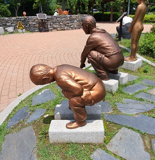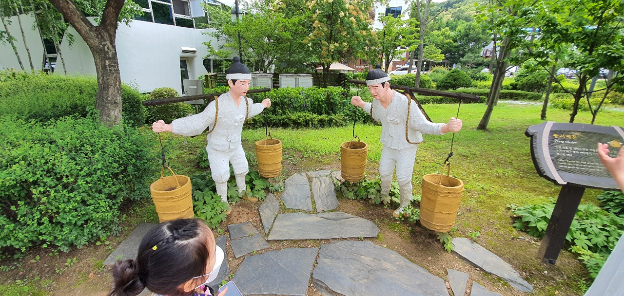 똥지게꾼의 모습을 조형물로 만들어 놓았네요. 응가에 재를 섞으면 거름으로서 효과가 좋았다고 합니다. 3D 직업의 전형적인 예가 아닌가 싶네요. 우리 세대도 저걸 눈으로 직접 보지는 못했던지라... 아이들 눈에는 어떻게 보였을지 궁금합니다.