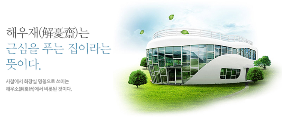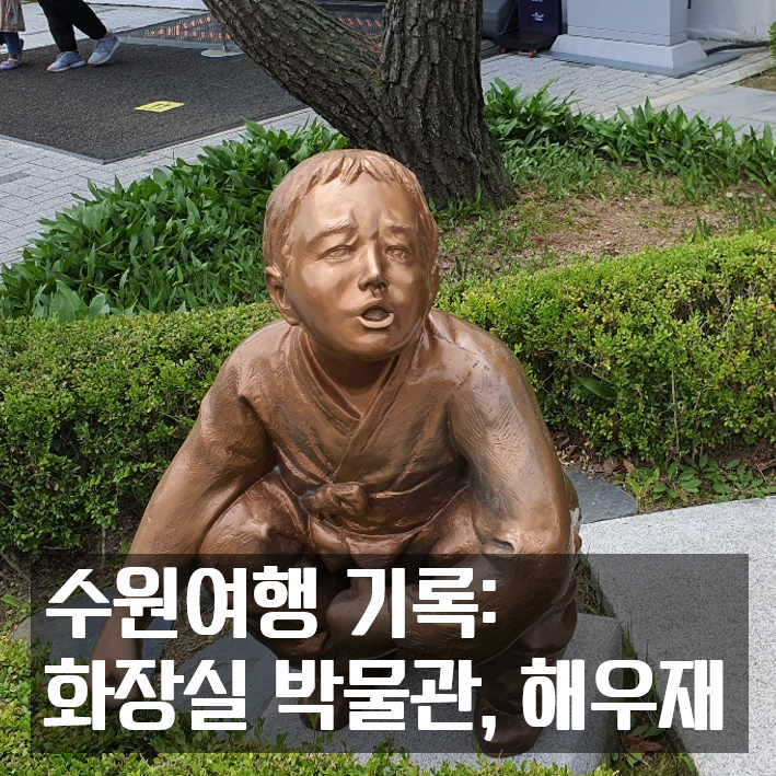 수원여행 첫 방문지는 "해우재"라는 화장실 박물관이었습니다. 화장실을 주제로 문화전시를 한다니 특이했죠. 북수원 IC 에서 금방 도착할 수 있었는데, 볼거리들이 꽤 많이 있었습니다. 날씨도 괜찮았고, 조경도 예쁘게 꾸며 놓아서 사진 찍기도 아주 좋았어요.