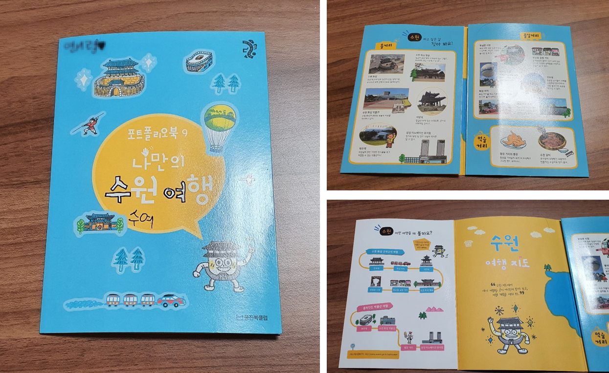 책을 꺼내서 미리 읽히고, 수원에 무엇이 있는지 각 명소에 얽힌 이야기 등등을 읽어 준 다음에, 포트폴리오북을 통해서 여행 코스를 짜는 과정이 재미있더군요. 아이도 꽤 즐거워했고요. 사실 저는 운전만 했고, 여행은 아내가 전부 다 계획하고 리드했어요. 아이들은 밖에 나가니까 그냥 좋아했고....