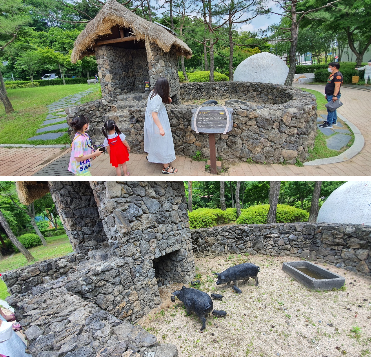 통시변소 라고 하네요. 사람은 저 움막에서 볼일을 보고, 움막 아래에는 흑꿀꿀이들이 맛있게 먹는다고 합니다. 초등학교 시절 선생님께서 흑돼지를 저렇게 키운다고 이야기 해 주신 게 생각이 나네요. 흑돼지가 맛있는 이유가....? 현대에는 저렇게 하는 곳이 없겠죠? 먹고 싸고 그걸 먹고... 먹은 자를 또 먹고... 생태계의 순환의 전형적인 모델이네요.