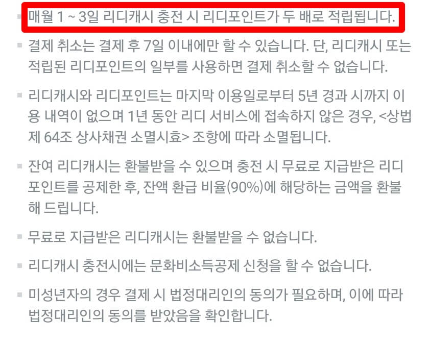 1. 리디캐시 구입 보너스 포인트
