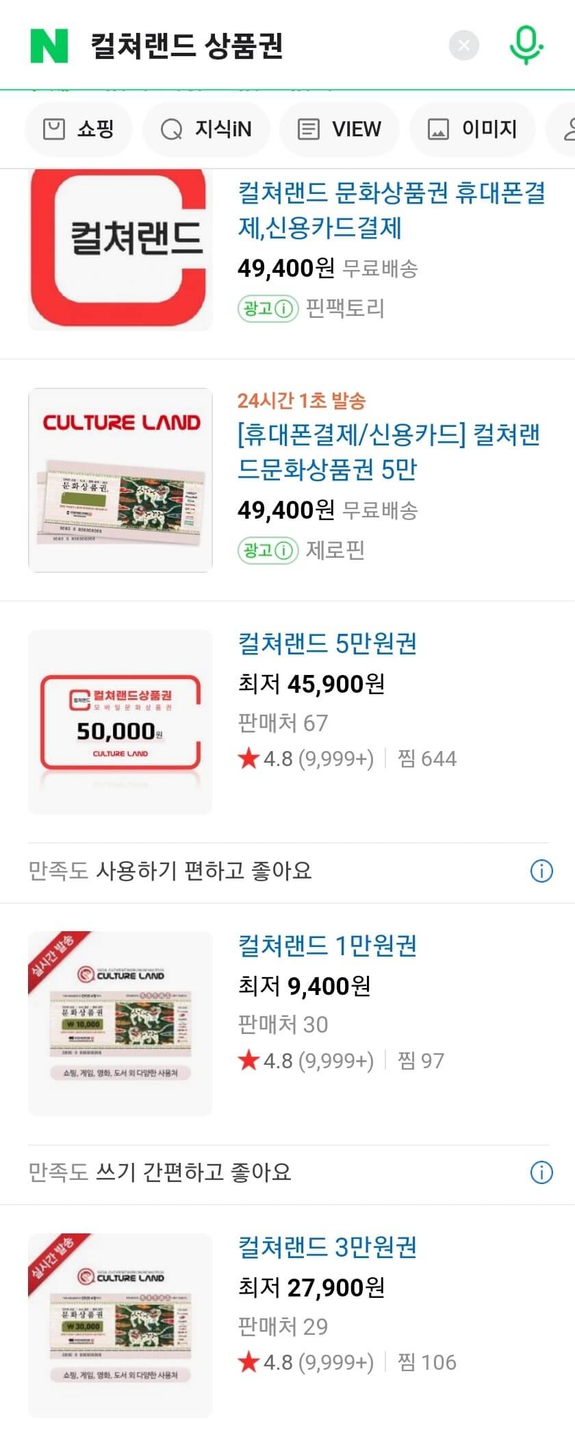 - 먼저 네이버에서 컬처랜드 상품권을 검색합니다.