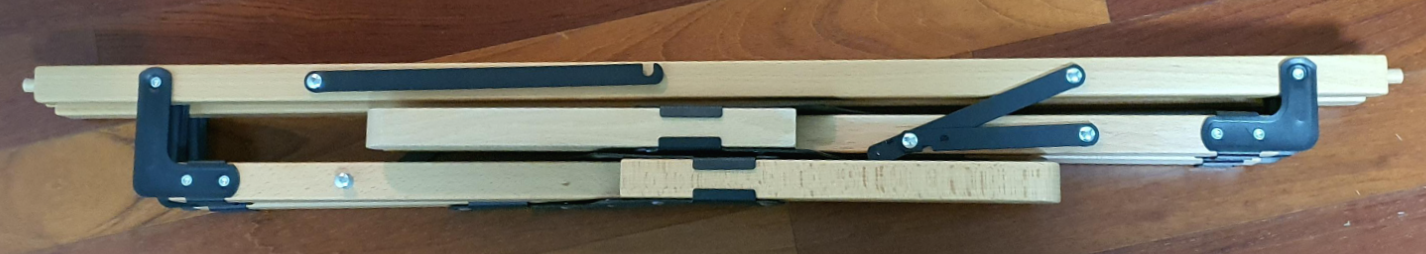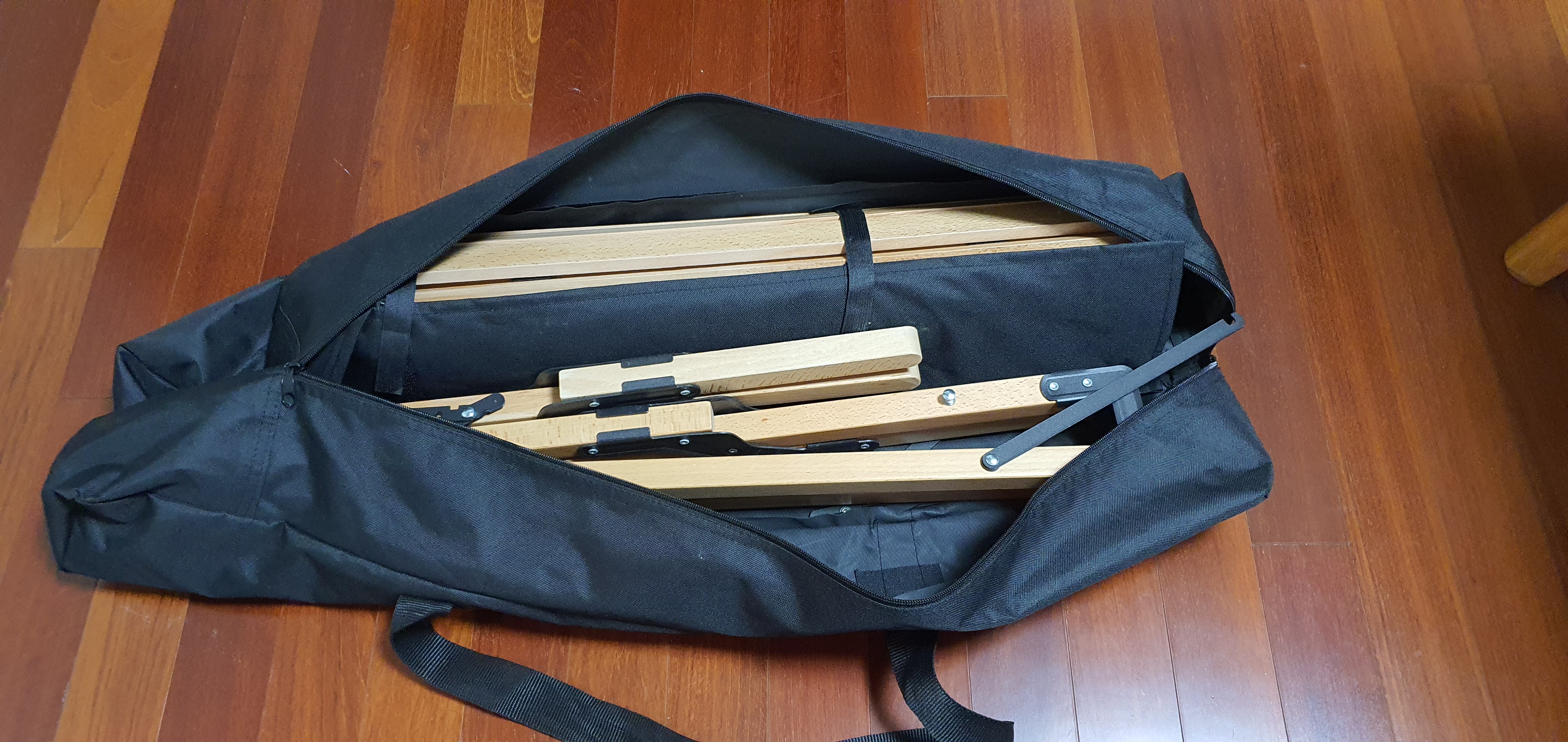 개봉하면, 롤 모양의 상판을 수납하는 곳과 다리를 수납하는 곳이 구분되어 있다. 롤탑을 수납하는 곳은 행여나 롤이 풀리지 않게끔 벨크로로 잡아 주게 되어 있다. 다리는 , 그 구조가 취할 수 있는 형태 중에 가장 효율적(?)으로 접혀 있었다.