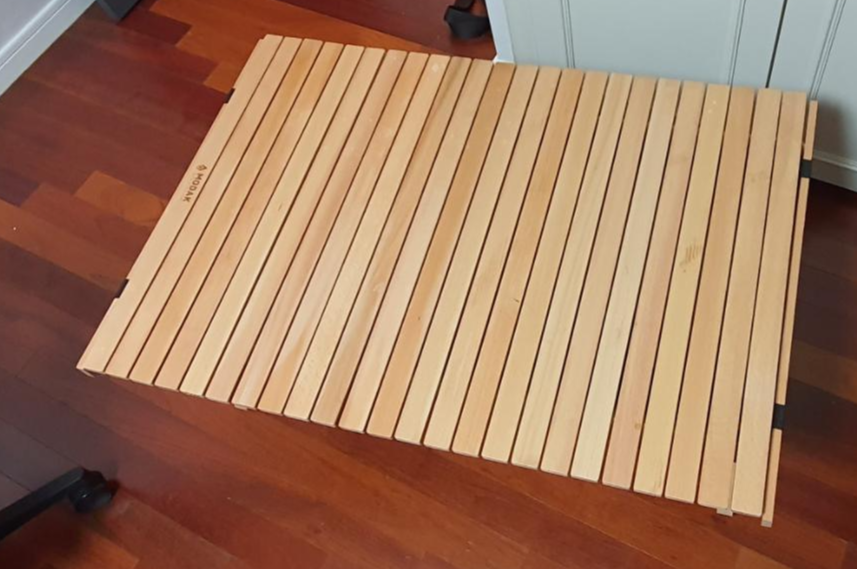 평평하게 접는 테이블도 좋았지만, 롤 테이블은 수납도 간편하고, 그 특유의 생김새가 매력적이었다. 이왕이면 금속제보다는 목재로 된 "우드"롤테이블을 가지고 싶었다. 캠핑고래에서 10만원 초반에 구입. 수납 가방도 제법 퀄리티가 있어 보였다. 한손으로 들기에 그리 무겁지 않았다. 수납 가방 사이즈는 실측 결과 90cm x 20cm x 10cm 정도. 판상형으로 접히는 테이블보다는 테트리스 하기에 좀더 용이할 것으로 생각되었다.