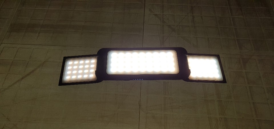 펼쳤을 때. 길이는 대략 48cm. 좌 / 우 / 센터 개별 동작이 가능하다.