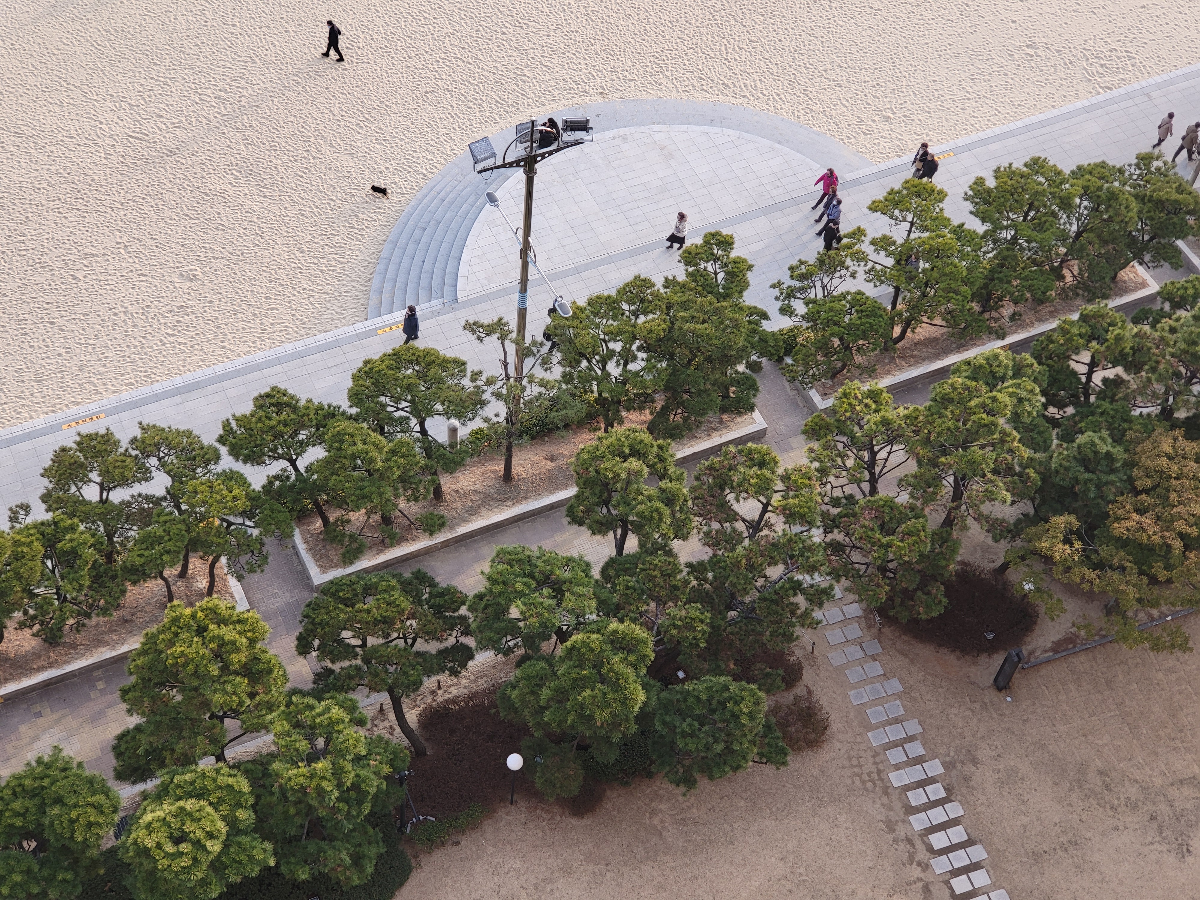 부산 파라다이스호텔 신관의 오션테라스뷰입니다. 해운대 앞바다를 12층 높이에서 볼수 있어서 좋더라구요. 파도소리도 들리고 갈매기도 구경하고 넘 좋았습니다. 따뜻할 때 왔으면 테라스에 비치된 테이블에서 차 한잔 할 수도 있겠네요.. ^^