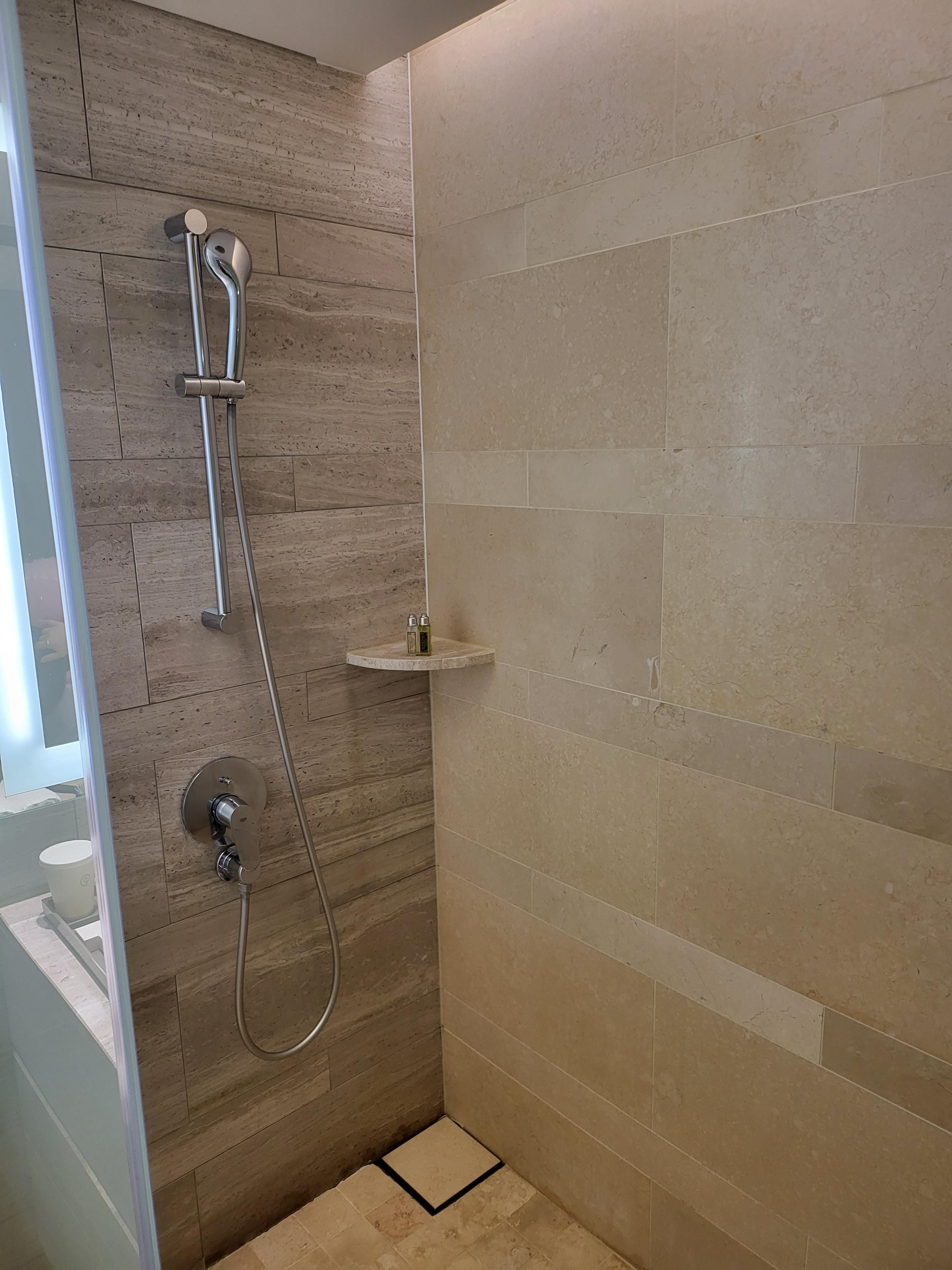 샤워부스는 깔끔한 디자인으로 되어 있는데, 수압이 엄청나게 강했습니다. 너무너무 마음에 들더라고요. ^^ 온수도 잘 나오고요. 샤워기에서 물 쫄쫄 나오면 그것만큼 답답한 것도 드물지요. 합격입니다.