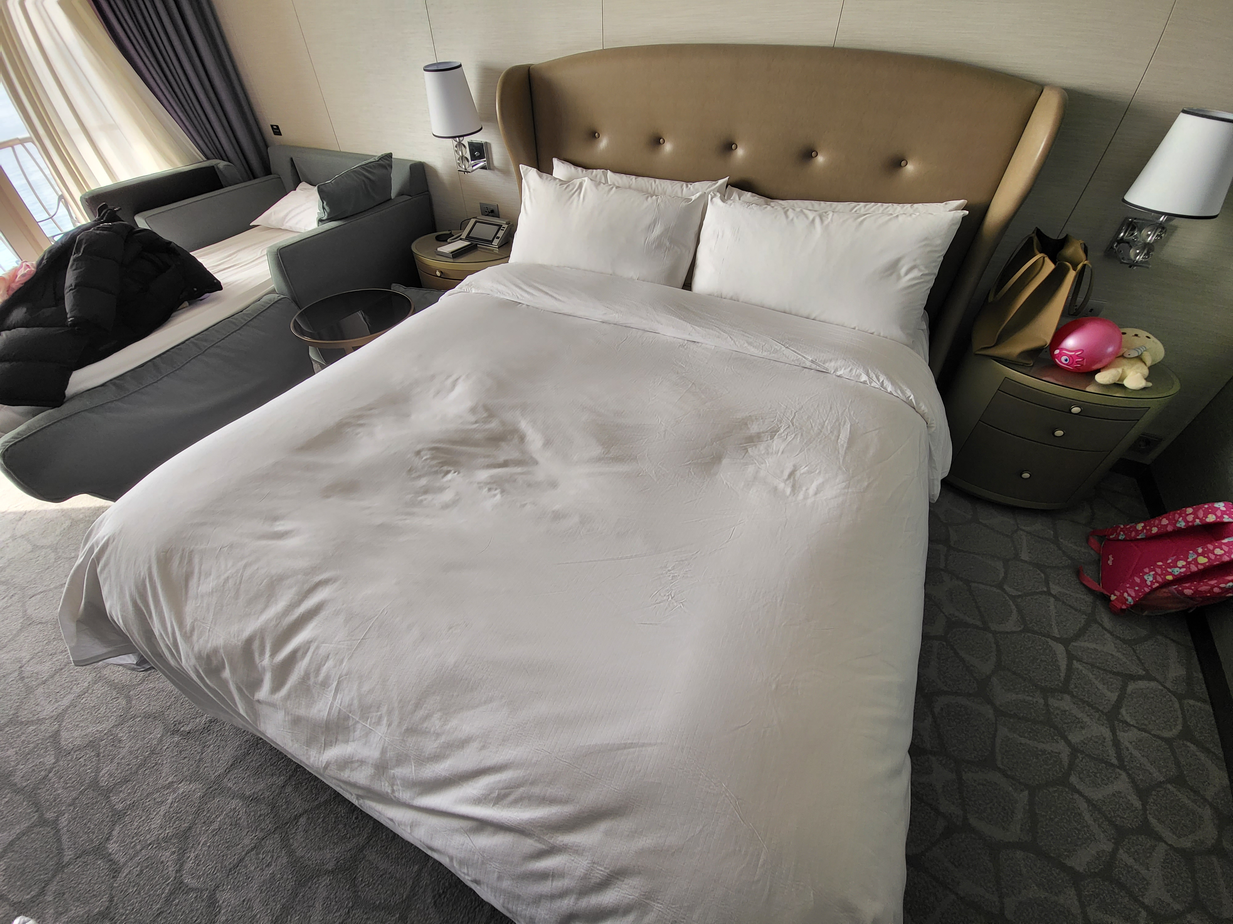 디럭스룸은 트윈 또는 더블침대를 선택할 수 있어요. 더블침대를 선택했는데, 지금 생각해보면 트윈을 선택할걸 그랬습니다. 소파침대에서 애기엄마가 자고 더블에서 아이들 둘+아빠 이렇게 잤는데, 넘 힘들었음..