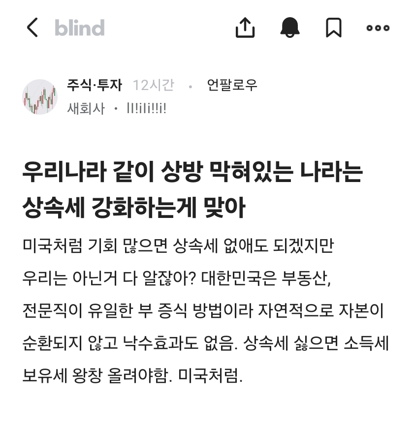 이 글은 마치 정의로운 척하지만, 실제로는 조세 정책의 핵심 논점을 단순화하고 감정에 호소하는 주장입니다. 경제정책은 밸런스와 구체적 데이터가 중요한데, 이런 글은 사람들을 단편적 사고에 가두기 쉬우며 정책 논의의 질을 떨어뜨릴 수 있습니다. 신중해야 할 주제일수록, 신중하지 않은 글이 가장 해롭습니다.