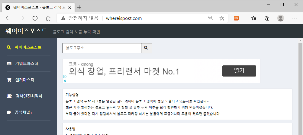 구글에서 "웨어이즈포스트"를 검색해서 사이트에 접속한다. 아래 그림에 주소창 참고..