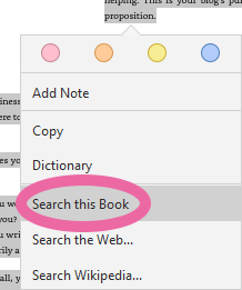 여기에서 Search This Book 메뉴를 클릭하면, 아래와 같이 옆에 보조창이 하나 뜹니다. 보조창 위에 보면 텍스트를 편집할 수 있도록 에디트 박스가 나오지요.