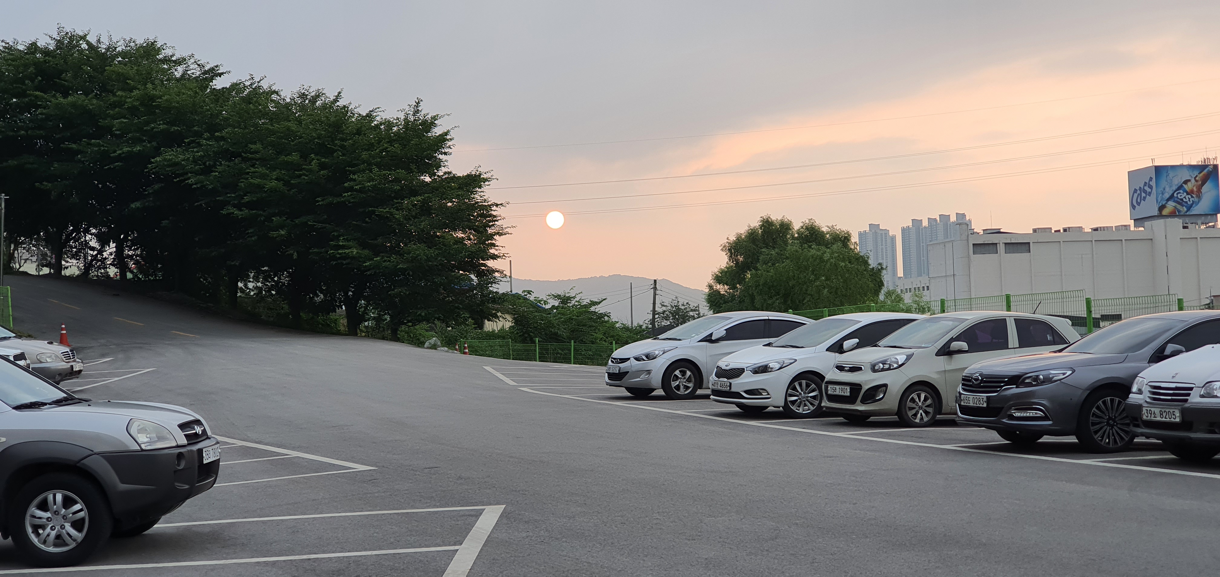 기념으로 교회 주차장에서 찍은 일몰 태양 사진 하나.