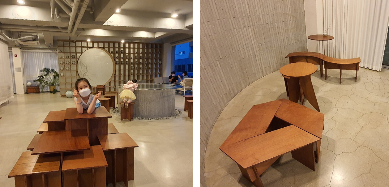 테이블과 의자들의 디자인이 특이했습니다. 저런 물건들은 직접 디자인하는 건지, 기성품을 살수 있는 건지 모르겠지만... 인테리어에 대해 문외한인 제가 보아도, 심플한 감각을 잘 살린 디자인이 아닌가 싶네요.