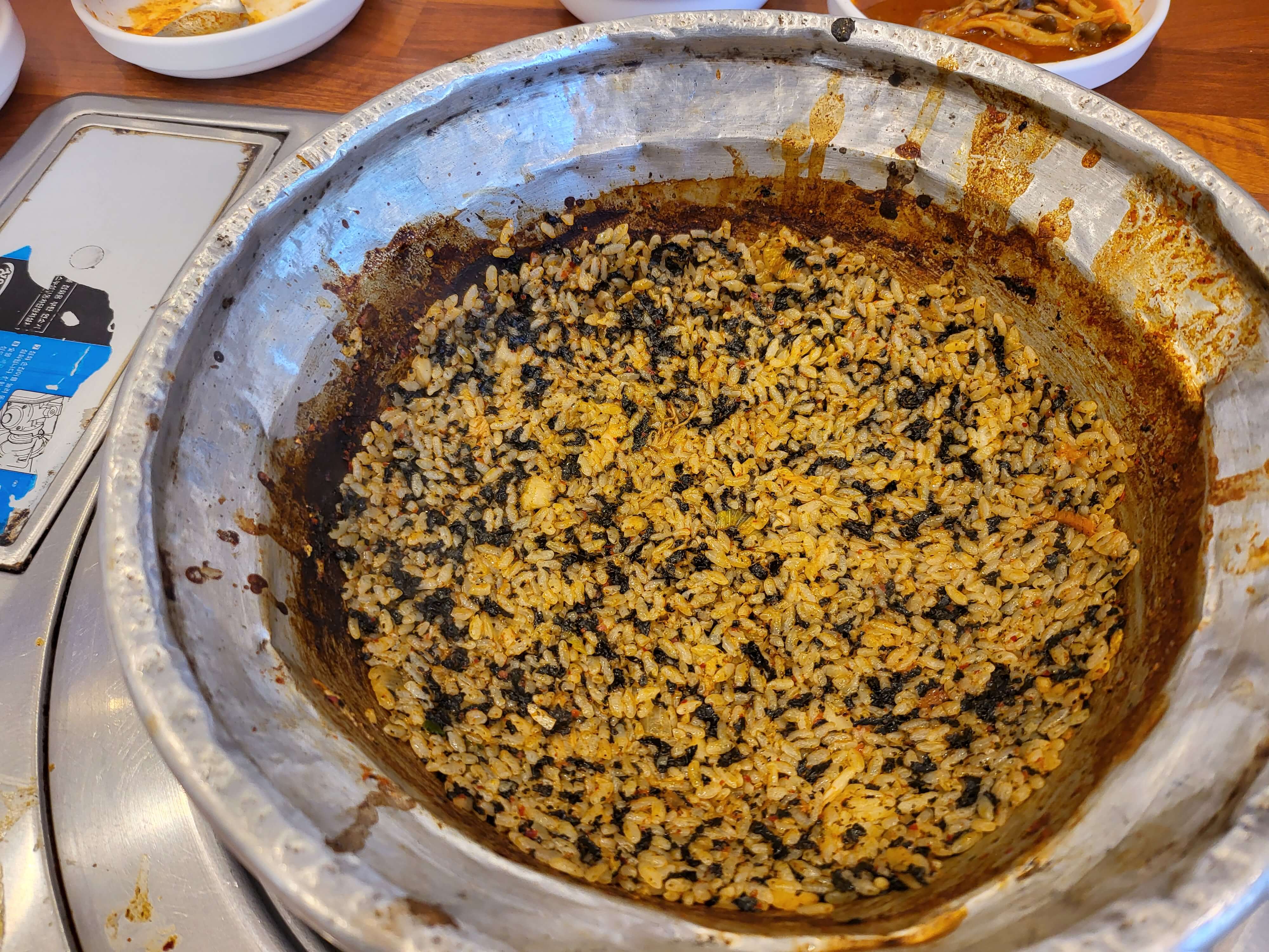 우리는 시간이 없어서, 누룽지 되기 전에 싹 긁어 먹고 나왔습니다.