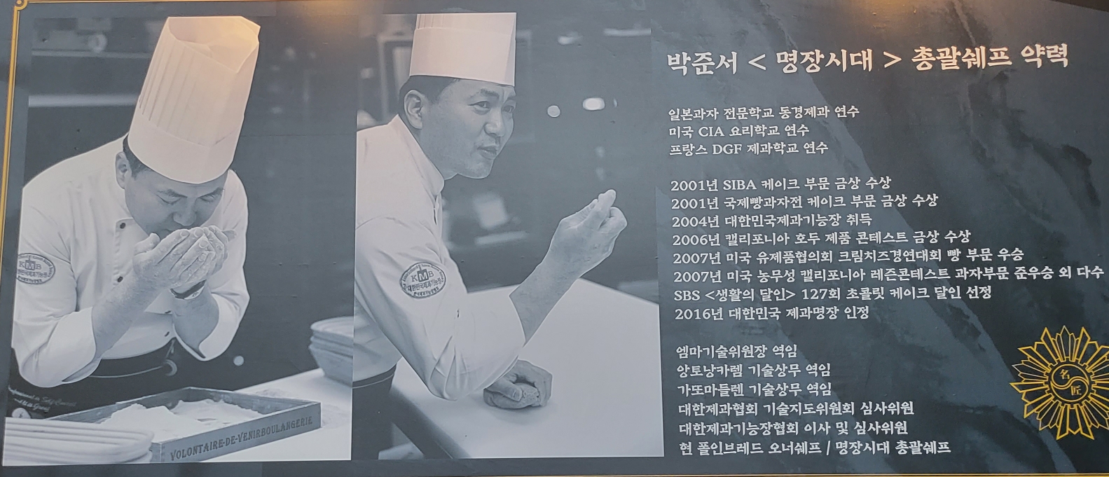 명장시대 총괄 쉐프인 박준서 명장을 소개하고 있네요. 저는 빵알못이지만, 경력이 매우 화려하신 분 같았습니다.