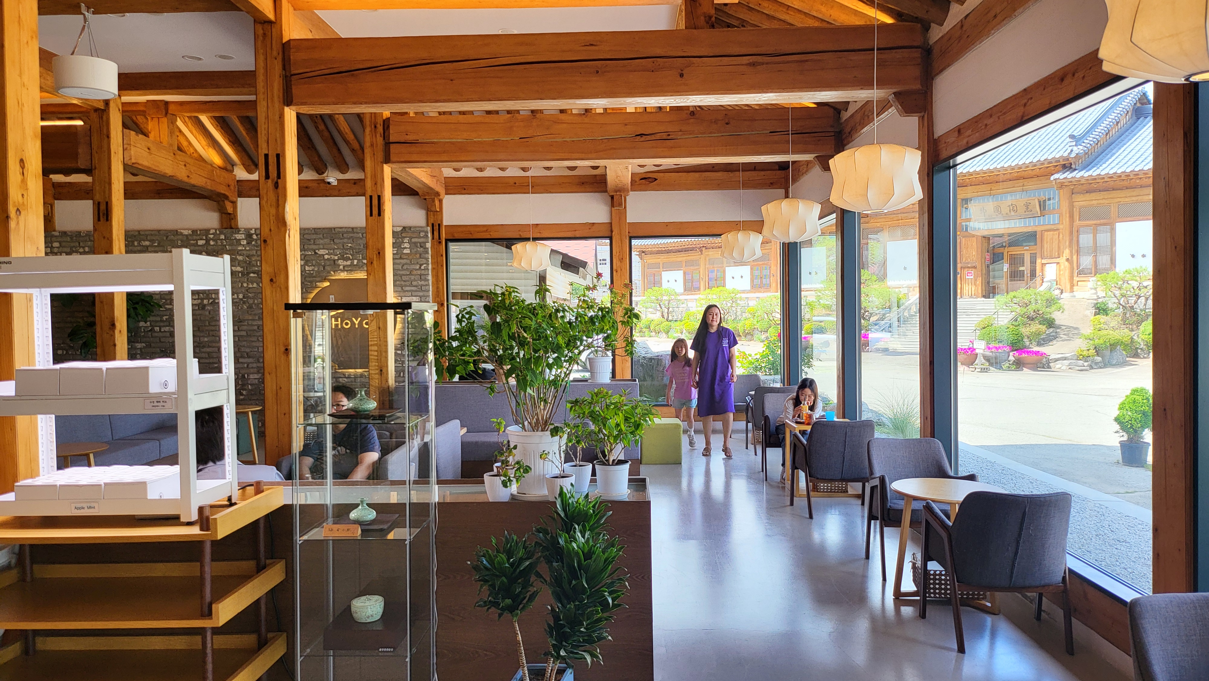 나무 서까래와 기둥은 한옥 구조를 그대로 살렸고,