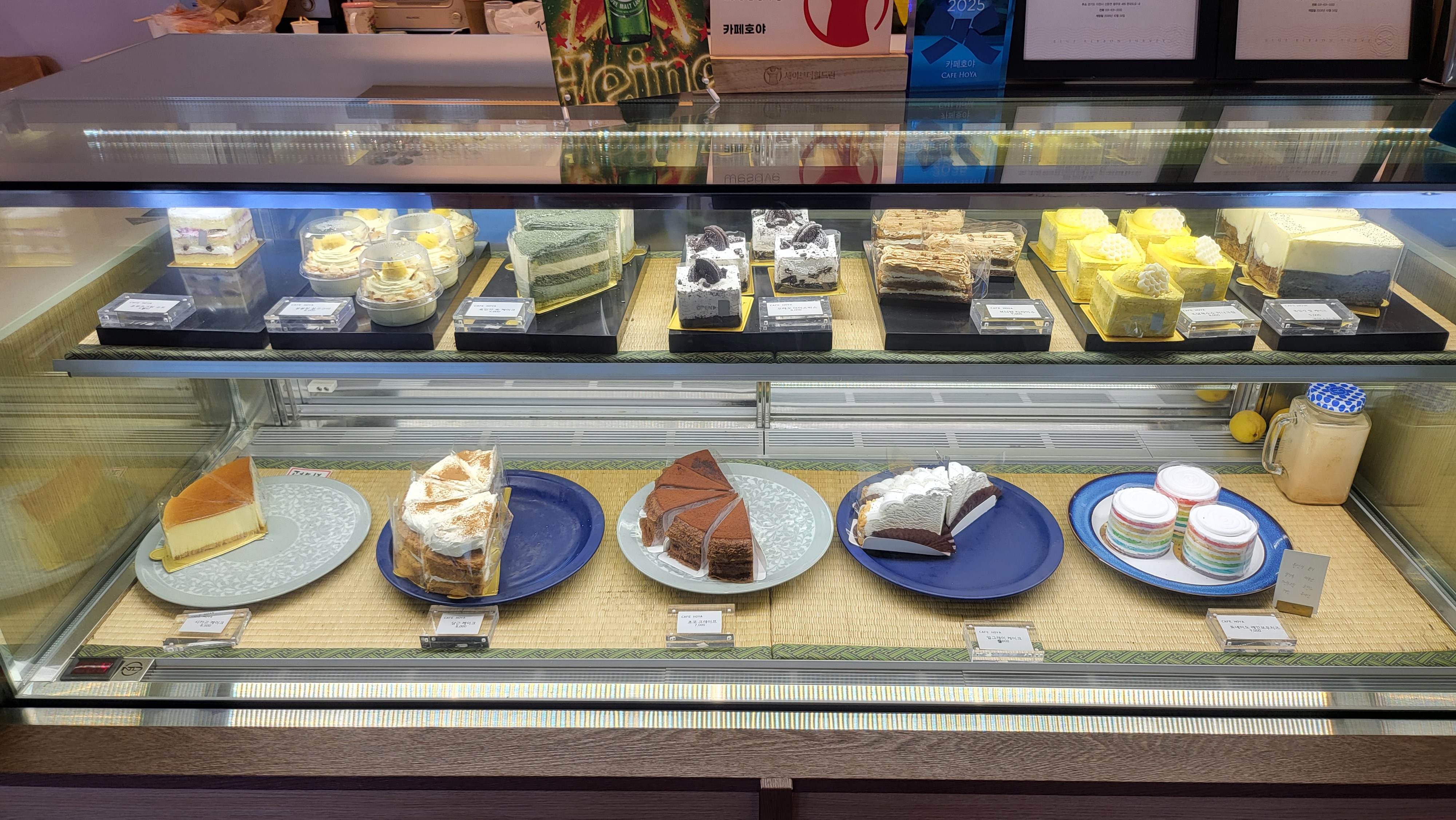🍰 디저트 진열대 – 종류도 풍부하고 보기에도 좋음