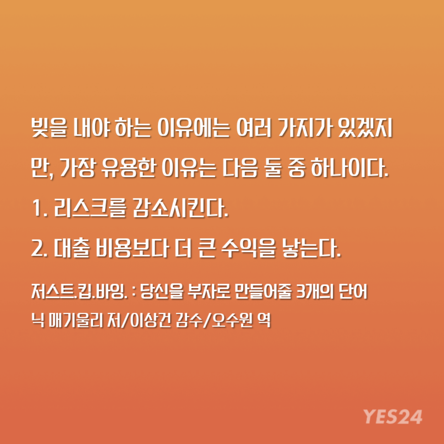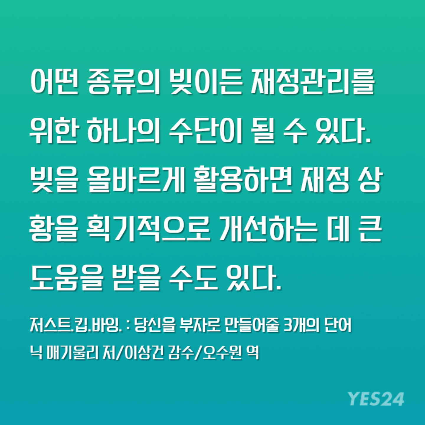 부채를 현명하고 올바르게 사용하는 다양한 아이디어를 접해 볼 수 있습니다. 포스팅을 보아도 유용하시겠지만, 책을 사서 읽어 보신다면 더 많은 유익을 누리실 수 있을 걸로 생각됩니다. ^^