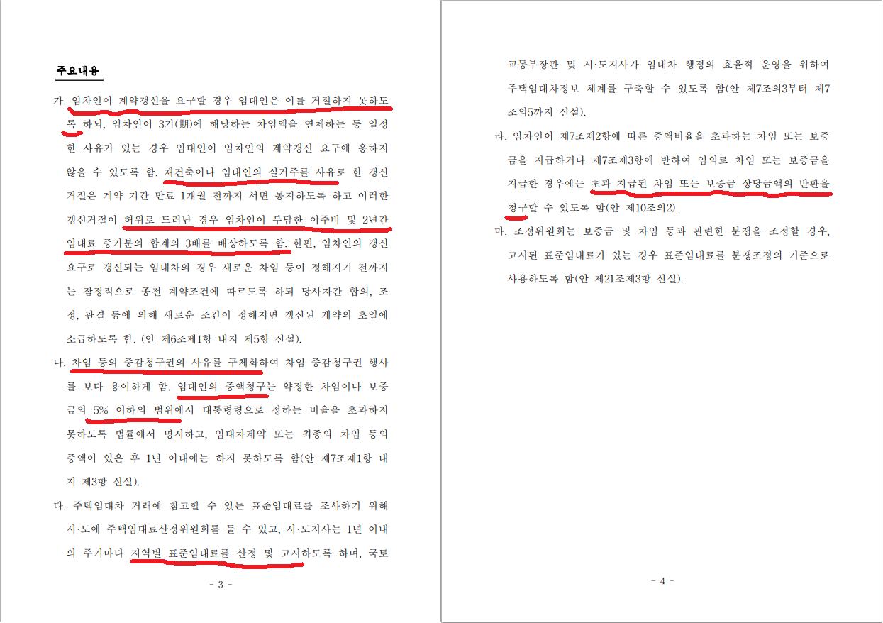 즉, 세입자가 더 살고 싶은데 거절하려면 거절할 이유가 있어야 한다. 만약 집주인이 들어가 살고 싶다는 이유를 댔는데 나중에 들어가 살지 않으면 3배까지 배상해야 한다. 월세나 전세보증금을 올려 받으려면 왜 올려받아야 하는지 사유가 있어야 한다. 얼마가 적정한 임대료인지를 시, 도지사가 결정하는데, 만약 임대료가 이보다 비싸면 세입자가 돌려달라고 청구할 수 있도록 한다.