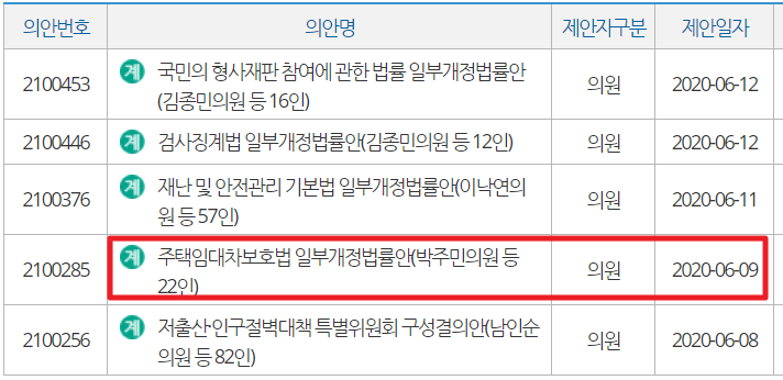 법률 이름을 직접 써도 되고 발의자를 써도 된다. 박주민 의원이 대표 발의했으니 대표의원으로 검색해해 보기로....