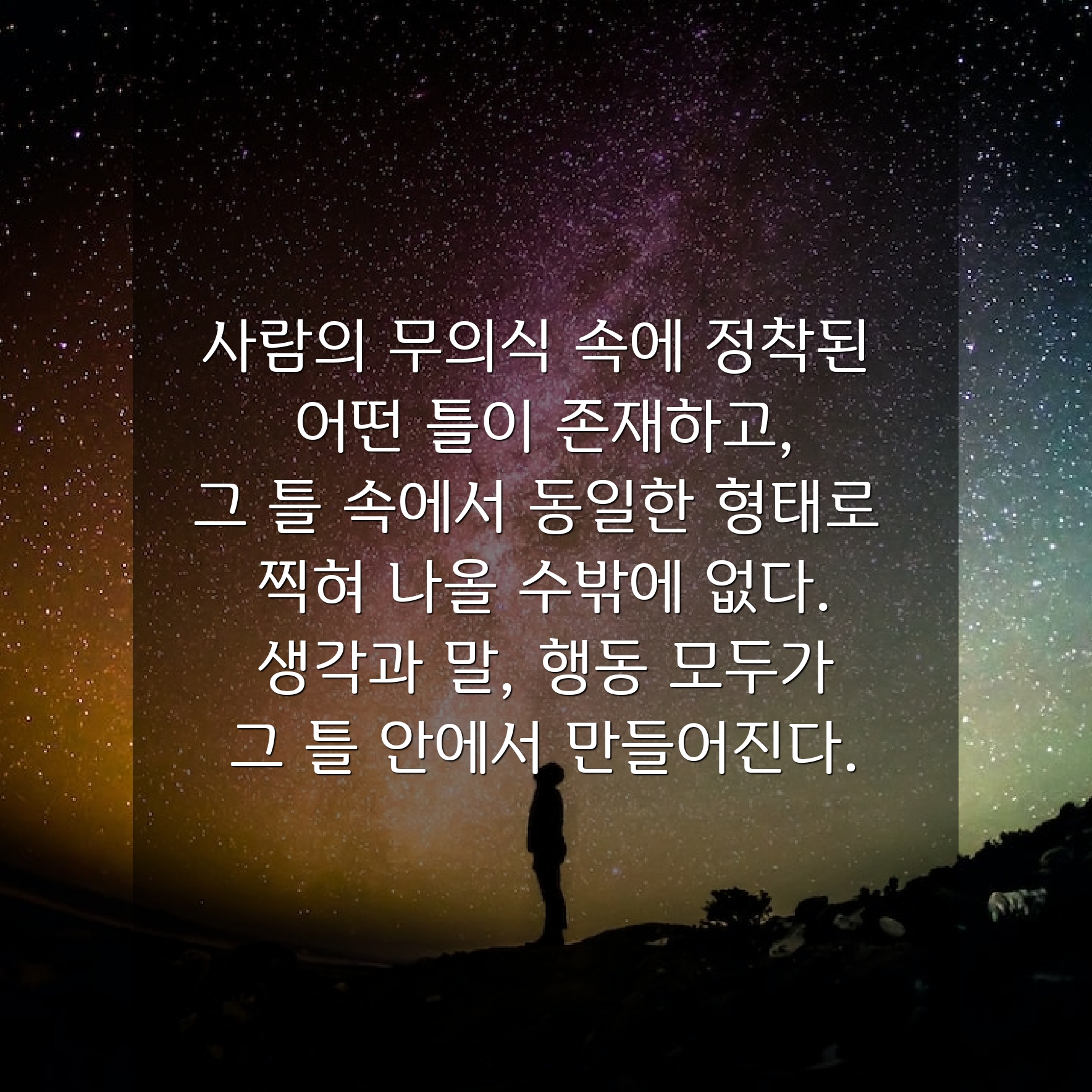 이 책의 내용을 전부 다 소개해 보고 싶지만, 시간관계상 제가 감명깊게 읽었던 한 꼭지를 소개해 보려고 합니다. <생각은 무의식 안에 있는 틀에서 나온다>라는 꼭지입니다. 제가 강력히 동의하는 내용을 명확하게 서술해 놓아서 소개해 보려고 합니다.