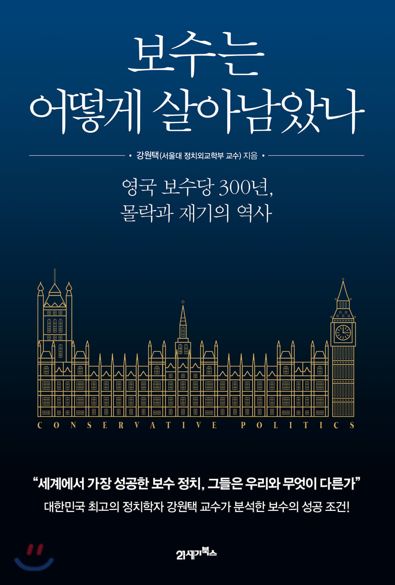 오늘 소개할 책은 "보수는 어떻게 살아남았나" 라는 책입니다. 서울대 정치학과에 계시는 강원택 교수께서 쓰신 책인데, 영국 보수정당의 역사를 다루고 있습니다. 저자가 서문에서 말하고 있듯, 우리 나라의 정당 정치 문화는 3~4년에 한 번씩 당명도 바꾸고 인적 구성도 바뀐 경우가 많지요. 민주주의가 정착된 지가 오래 되지 않기도 했지만, 수년에 한번씩 이합집산을 반복하는 정당정치의 행태와 비교해 봤을 때, 수백 년에 이르러 명맥을 유지하고 있는 영국 보수당은 어떻게 그 긴 기간에 걸쳐 살아남을 수 있었는지가 주요한 연구의 모티베이션이 되었다고 합니다.